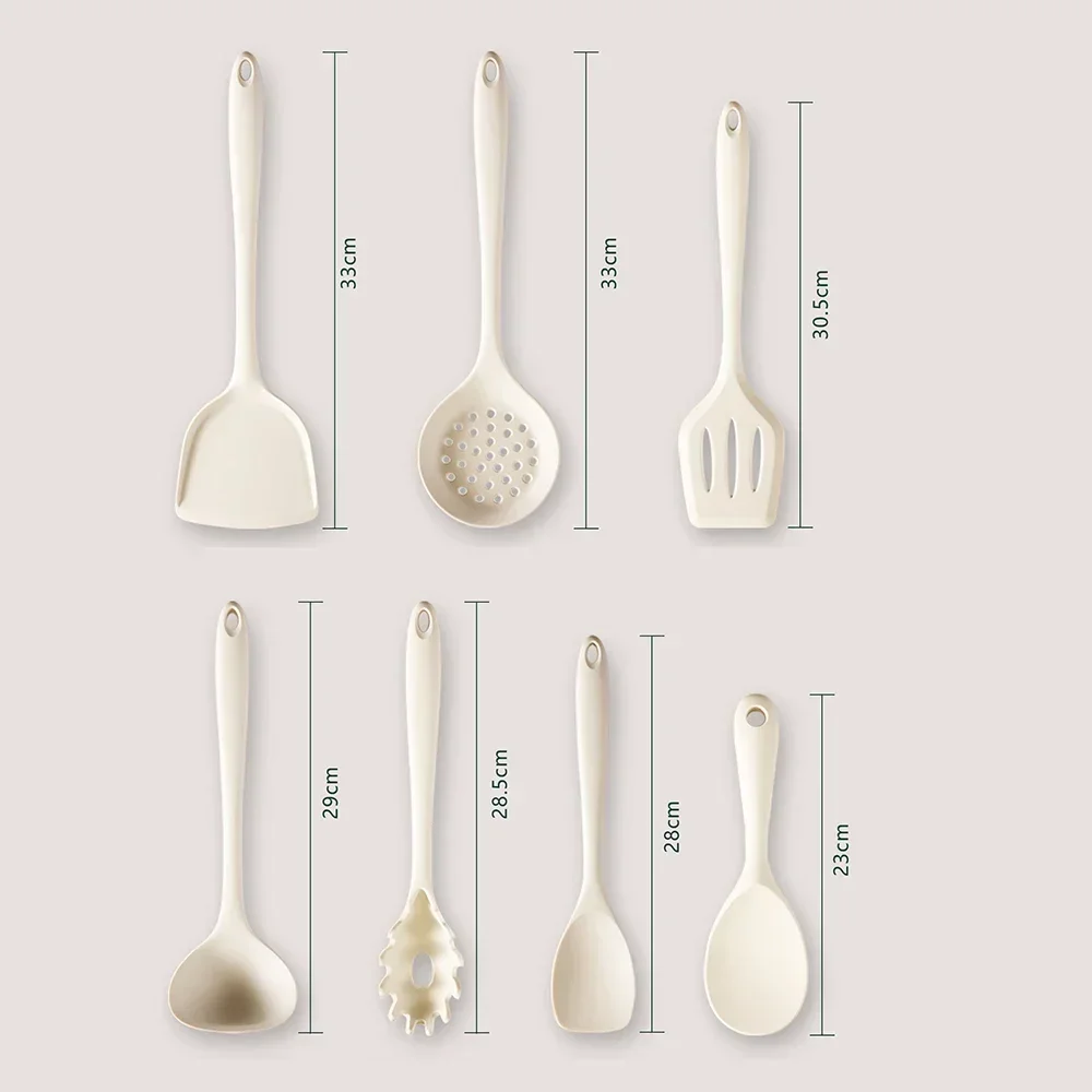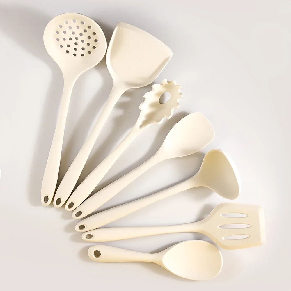 7Pcs Beige White Silicone Kitchenware Cooking Utensils