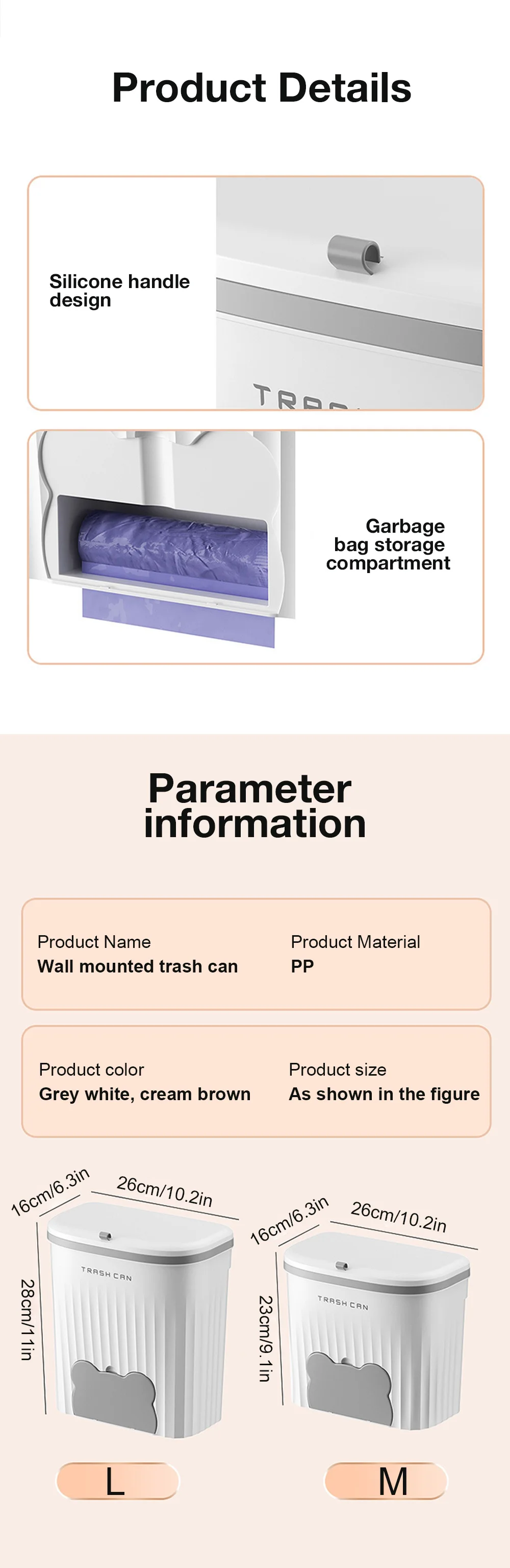 Larger Capacity and Convenient Size - The capacity of this trash can is 12L(26*16*29CM)/8.5L(26*16*23CM). It can be widely used in the kitchen, office, bedroom, bathroom, cabinet doors, pantry doors, cupboard, and car. You can place it anywhere you needed.