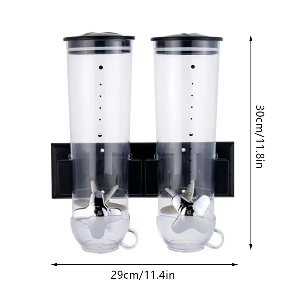 The cereal dispenser is made of PS and ABS, which is healthy and environmentally friendly. It can keep food dry and fresh for up to about 10 days. The wall-mounted design saves more space and makes the countertop neater. Large capacity and two containers can store more grains so you don't need to add them frequently. This product is ideal for cereal storage.